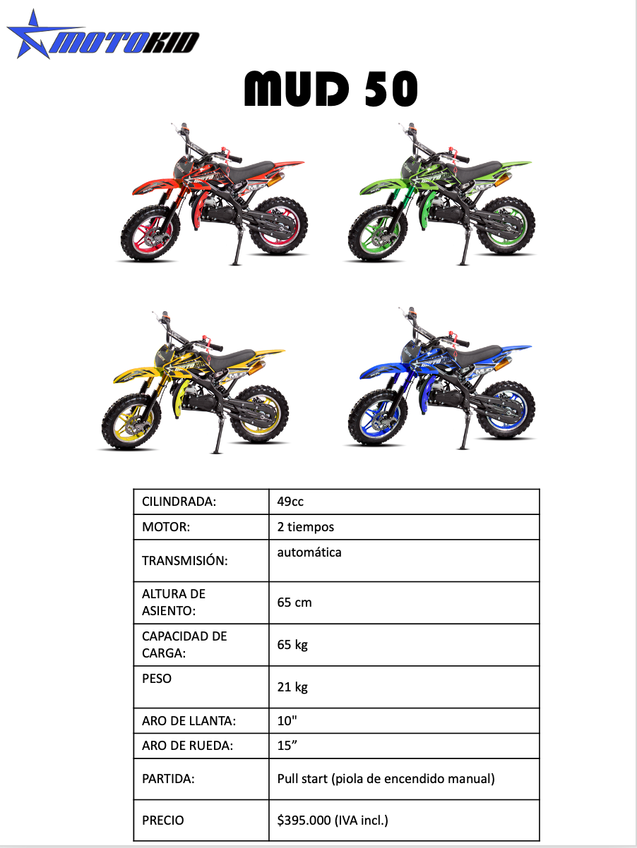 Moto 2 tiempos de 49cc. Automática. Altura de asiento 65 cm. * EL DESPACHO SE REALIZA A LA SUCURSAL DE VARMONTT QUE PREFIERAS * La moto va en caja y debe ser armada en unos simples pasos. Tiempo de armado aproximado: 35 minutos.
